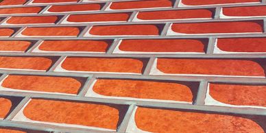 Paint marker and stencil used for new wallpaper texture in Scrooge's bedroom.