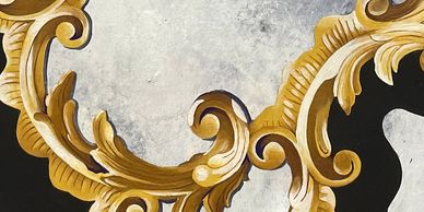 Finished piece, cut out. Gloss sealer used for gold and marble, matte sealer for black outline.