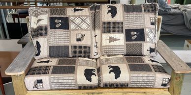 Couch reupholstery project for the ski lodge cabin scene in "Beautiful: The Carole King Musical."