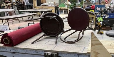 Finished reupholstery project. Chairs originally intended for "Around the World in 80 Days" but ultimately replaced with barstools.