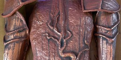 Completed set of ramboard upper body armor. Inspired by new and aged copper, and the different parts of a tree.